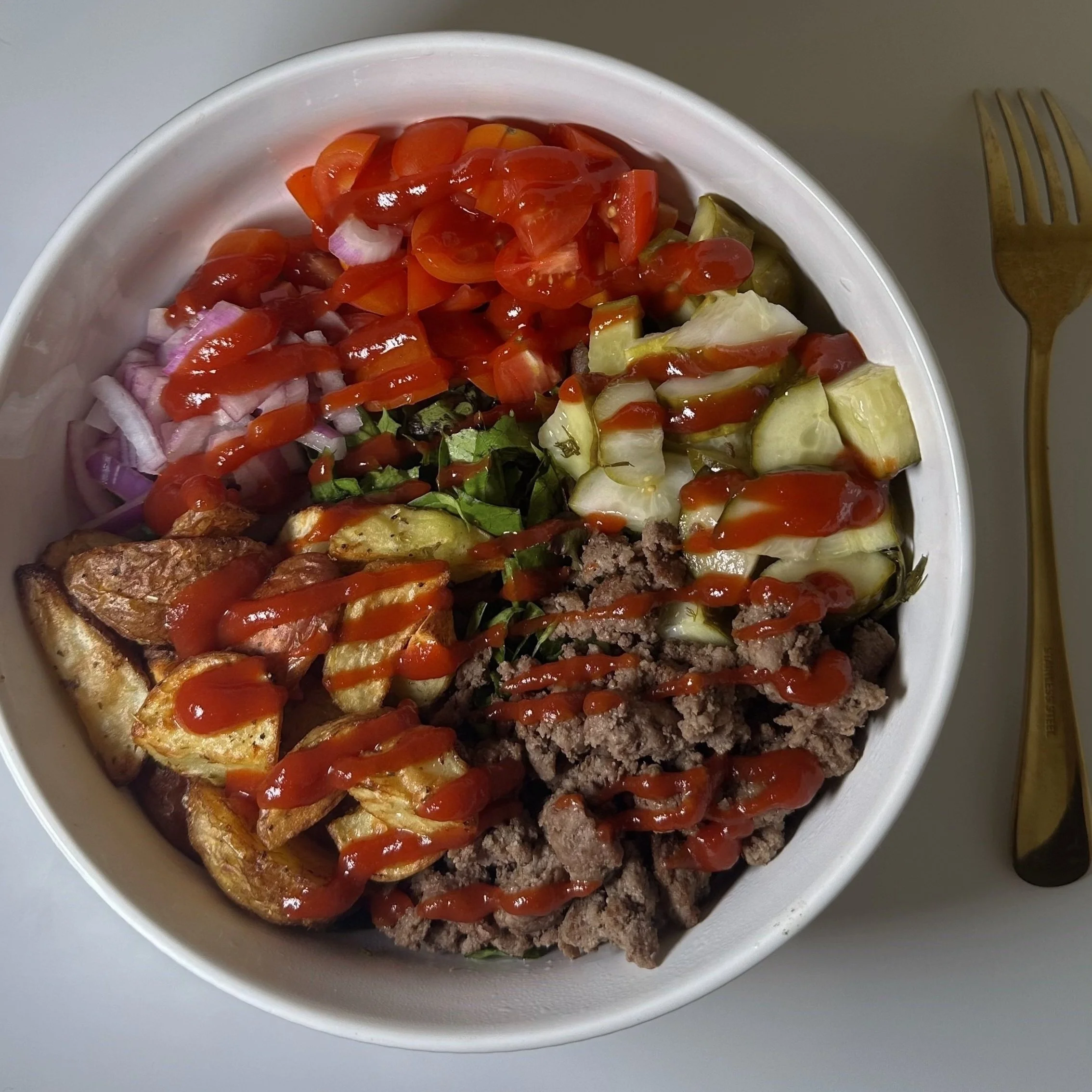 Burger Bowl + Crispy Potatoes